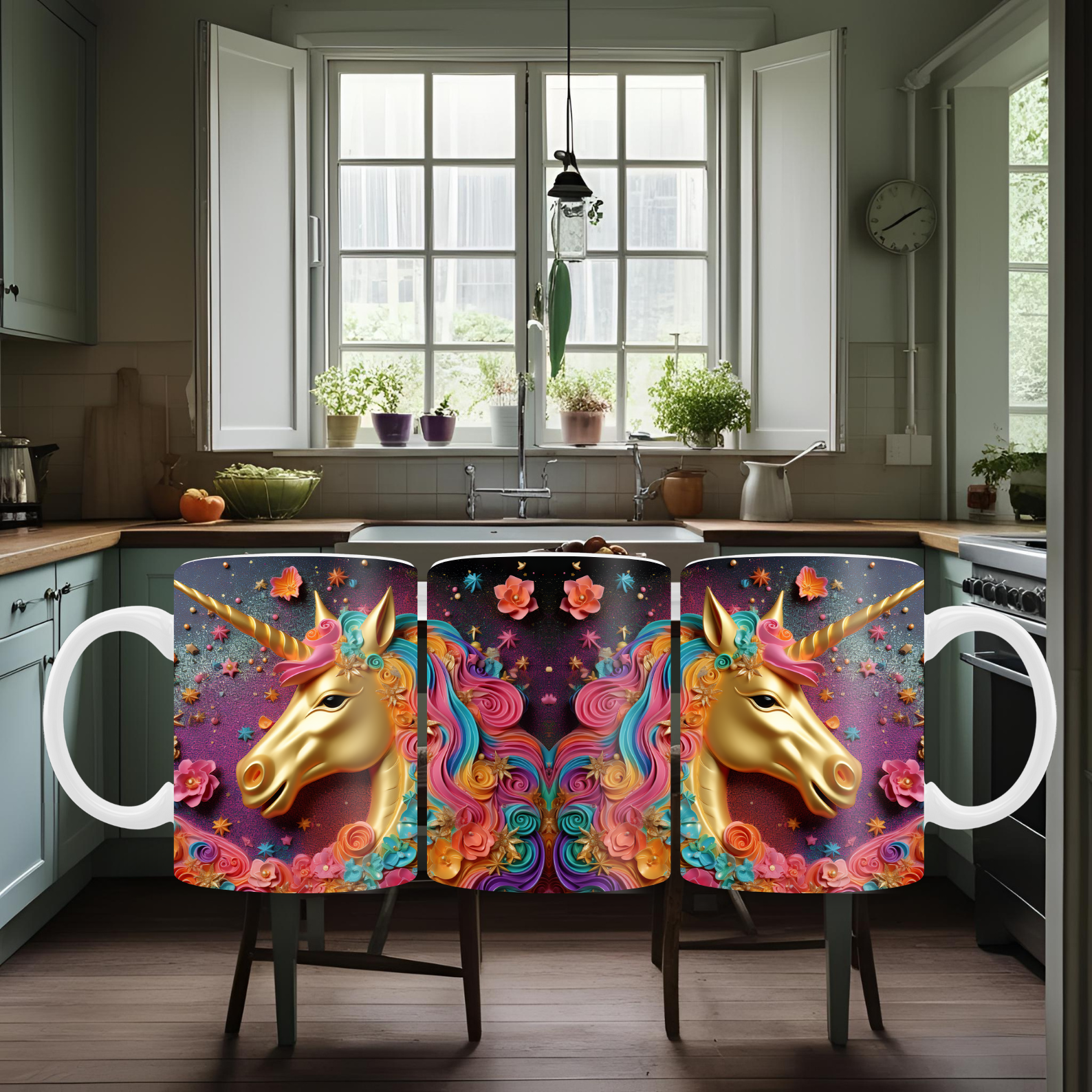 Regular price $15.99 USDSale price $15.99 USD Regular priceUnit price / perAdd a touch of magic to your morning routine! This stunning 3D Gold Unicorn Mug features a mesmerizing golden unicorn with a flowing rainbow mane, set...