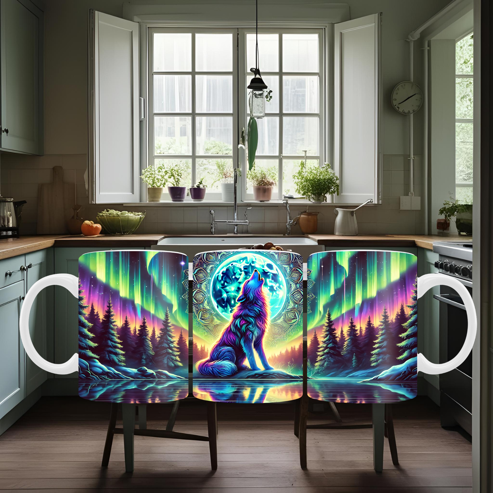 Regular price $12.99 USDSale price $12.99 USD Regular priceUnit price / perUnleash the wild spirit of nature with this stunning Northern Lights Wolf Mug! Featuring a breathtaking design of a lone wolf howling under a glowing full...