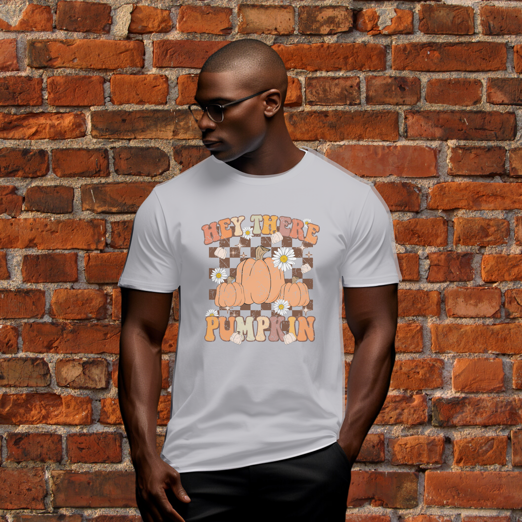 Regular price $17.99 USDSale price $17.99 USD Regular priceUnit price / per🎃 Checkerboard charm meets pumpkin patch sass in this fall-ready design. “HEY THERE PUMPKIN” pops in a retro font, playfully layered over a cozy collage of...