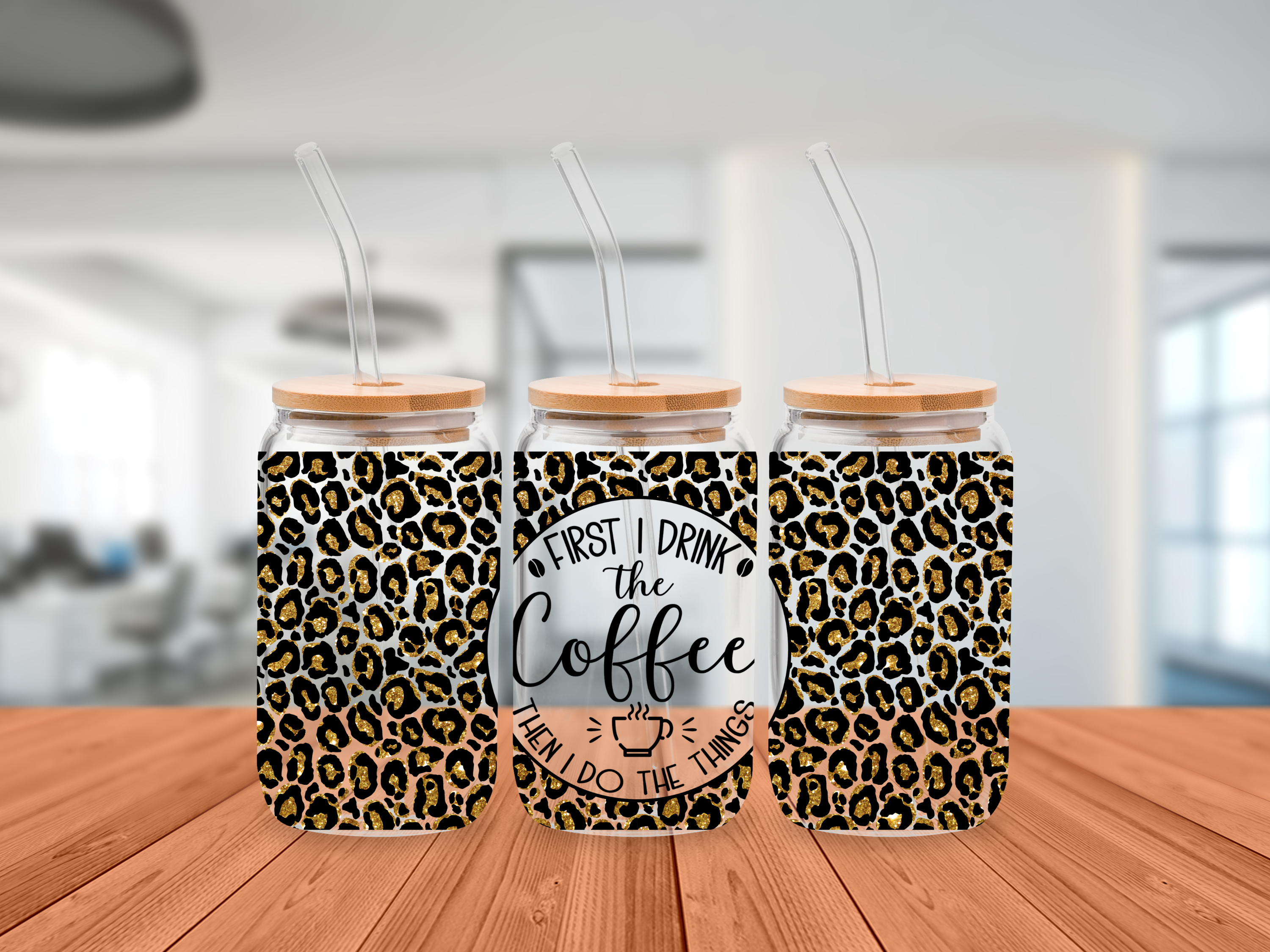 First I Drink The Coffee 16oz Frosted Glass Tumbler