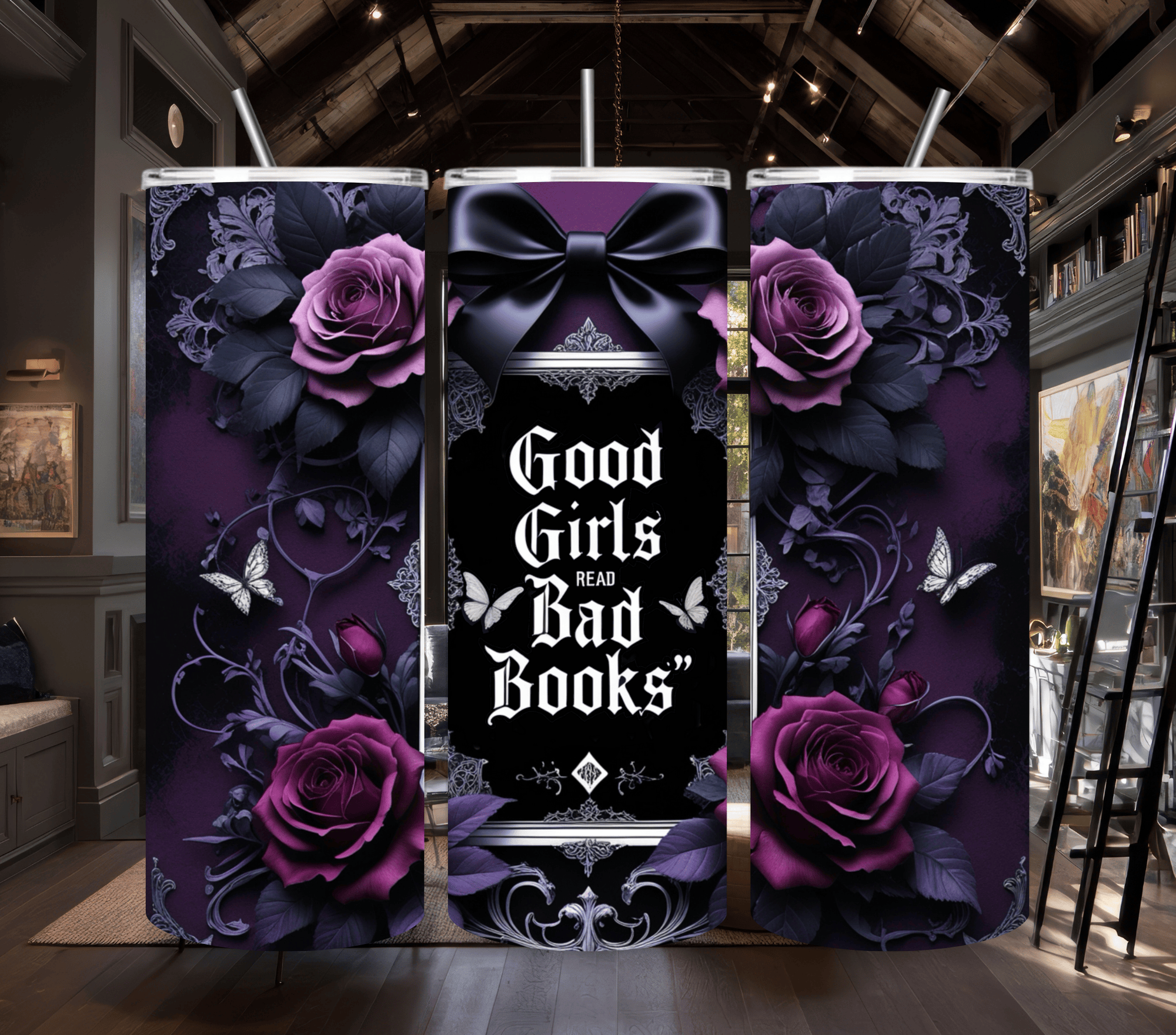 Regular price $19.99 USDSale price $19.99 USD Regular priceUnit price / per💜 Good Girls Read Bad Books Tumbler 🦋📚 For the reader who loves her romance dark, her butterflies ghostly, and her florals laced with attitude....