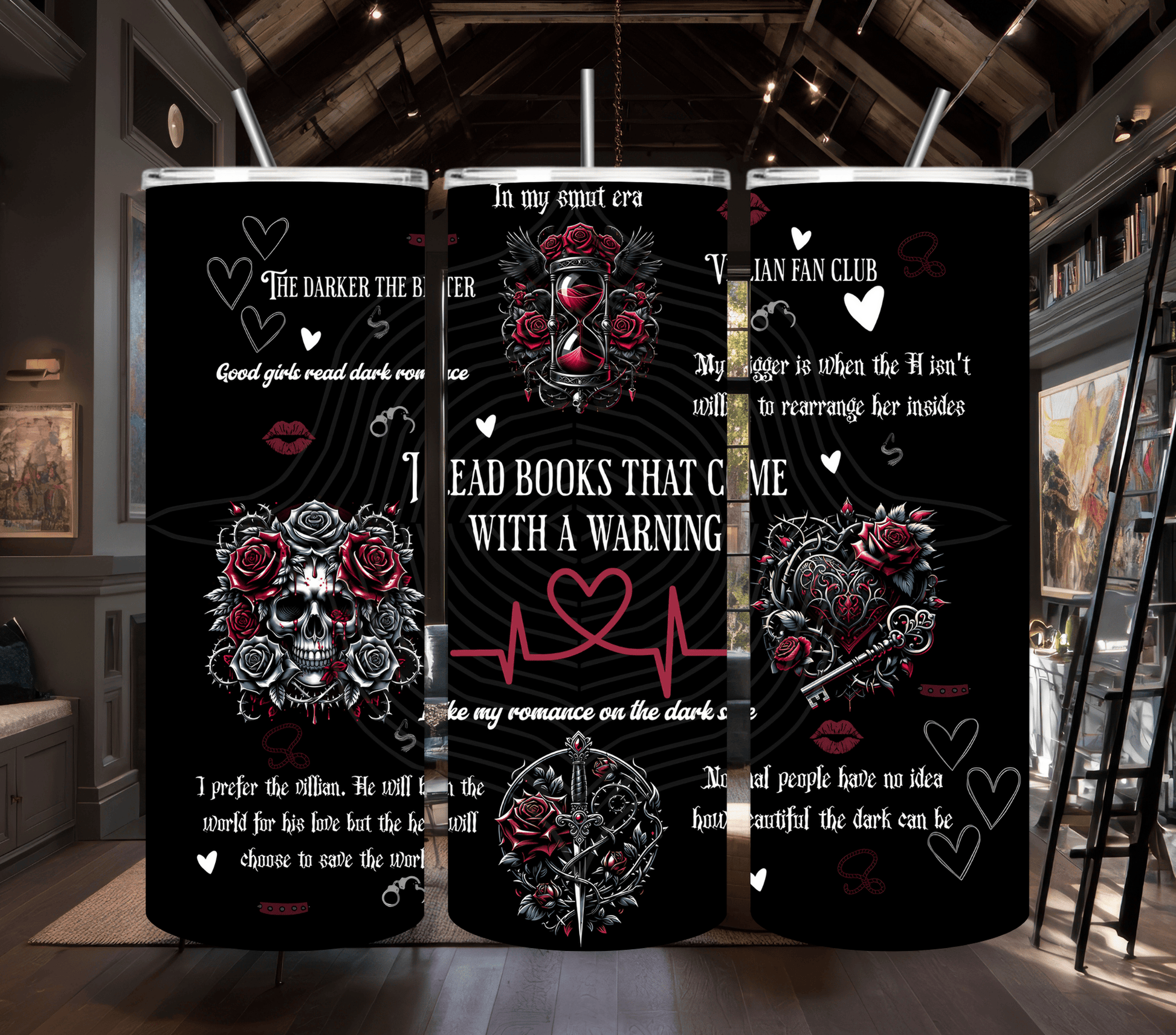 For the bookish soul who prefers villains over vanilla and thinks warnings are just invitations. This tumbler set is a love letter to the darker side of fiction—where skulls bloom with roses, hearts bleed poetry, and no one’s apologizing for being in their smut era.