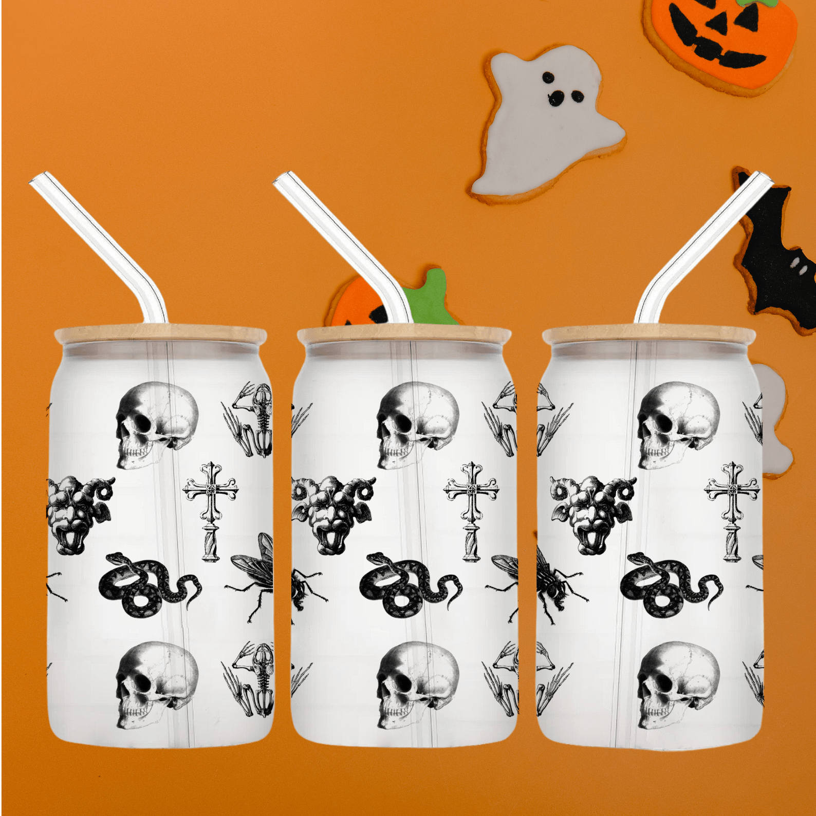 • 💀 Skulls & Crosses: A nod to the crypt-chic aesthetic, perfect for your midnight brew or moonlit mocktail.